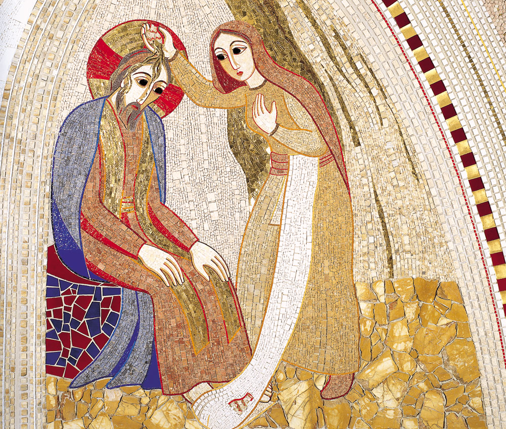 Opera: Marko Rupnik, Unzione di Betania – 2006 – Mosaico – Casa Incontri Cristiani, Capiago Intimiano.