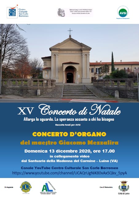 Il Concerto d’organo offerto dal Maestro Giacomo Mezzalira sarà trasmesso domenica 13 dicembre alle ore 17 dal Santuario della Madonna del Carmine di Luino attraverso il Canale YouTube del Centro Culturale San Carlo Borromeo.