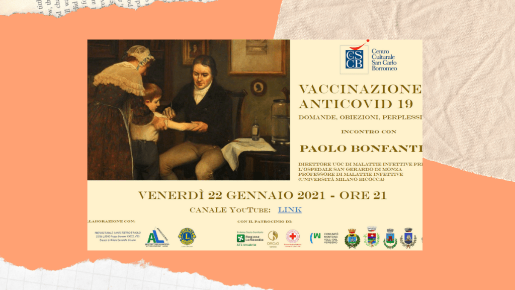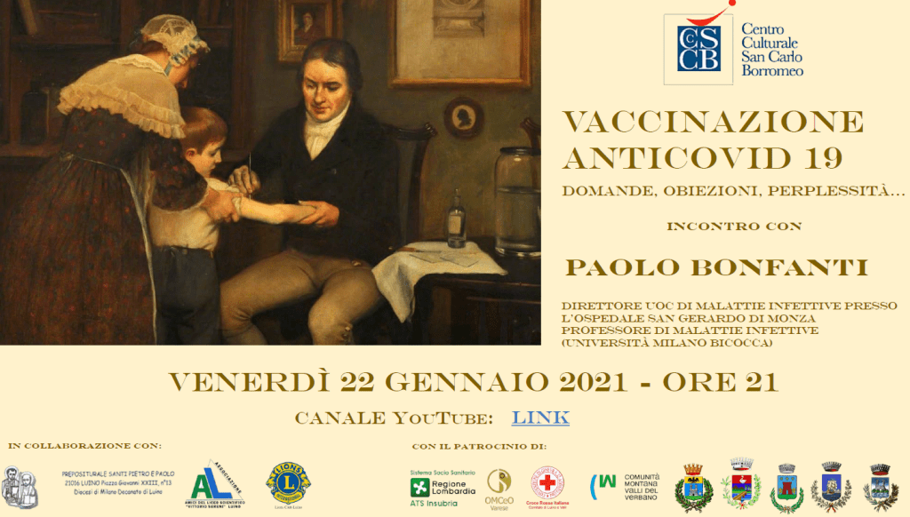 È in programma per venerdì 22 gennaio, alle ore 21, l’incontro dal titolo “Vaccinazione anti-Covid 19: le più frequenti domande, obiezioni, perplessità”.