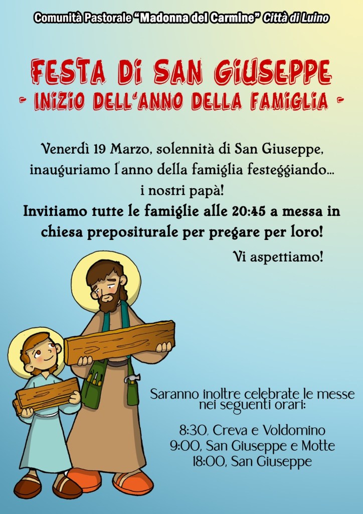 Altre SS. Messe, nel corso della giornata, verranno celebrate alle 8.30 a Creva e a Voldomino, alle 9 a San Giuseppe (Luino) e alle Motte e alle 18 a San Giuseppe (Luino).