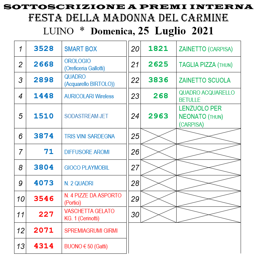 Festa della Madonna del Carmine – Sottoscrizione a premi interna 2021