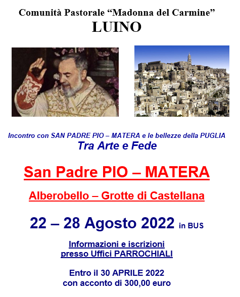 Viaggio tra arte e fede (Padre Pio, Matera, Puglia) – Agosto 2022