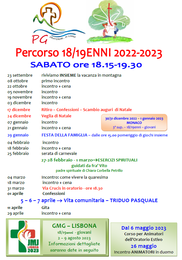 Percorso adolescenti e 18/19enni – Calendario 2022/2023