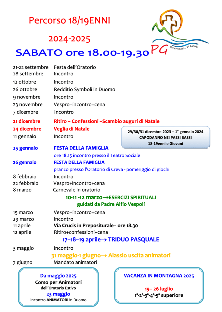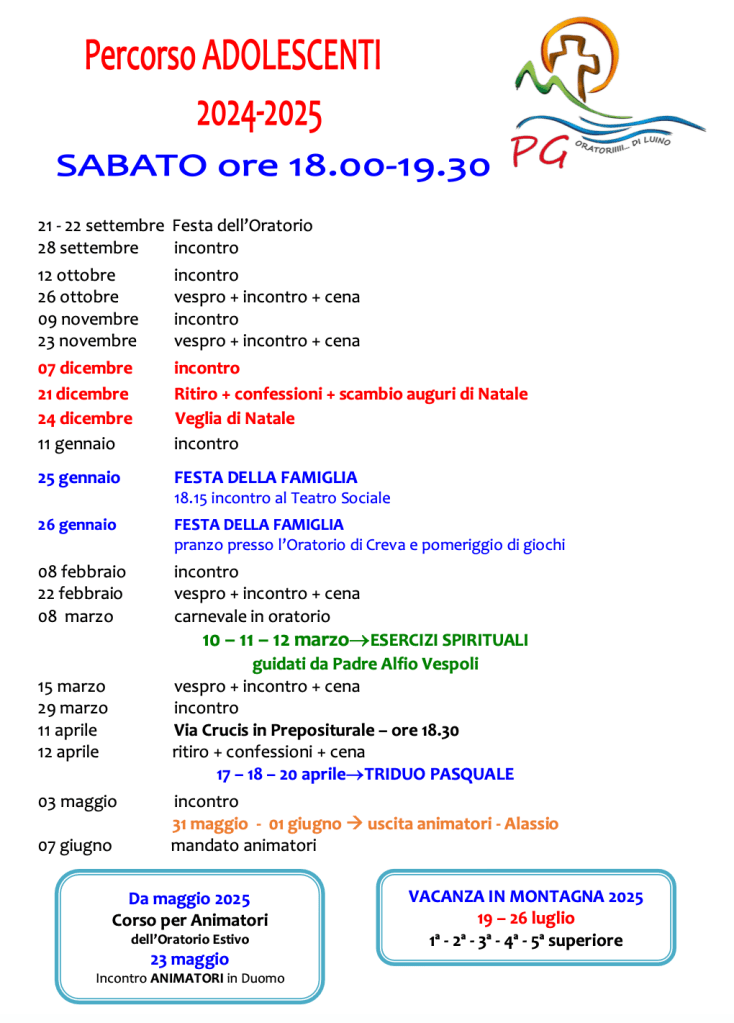 Percorso adolescenti e 18/19enni – Calendario 2024/2025