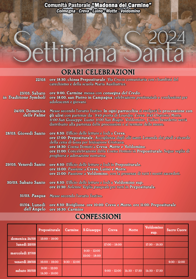 - Alle ore 21.00 Celebrazione della Passione del Signore a Voldomino con la presenza di tutti i sacerdoti.