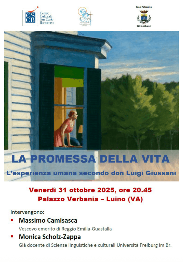 - Alle ore 20.45 incontro “La Promessa della vita” con S. Ecc. Mons. Camisasca e Monica Scholz Zappa, organizzato dal Centro Culturale S. Carlo Borromeo a Palazzo Verbania