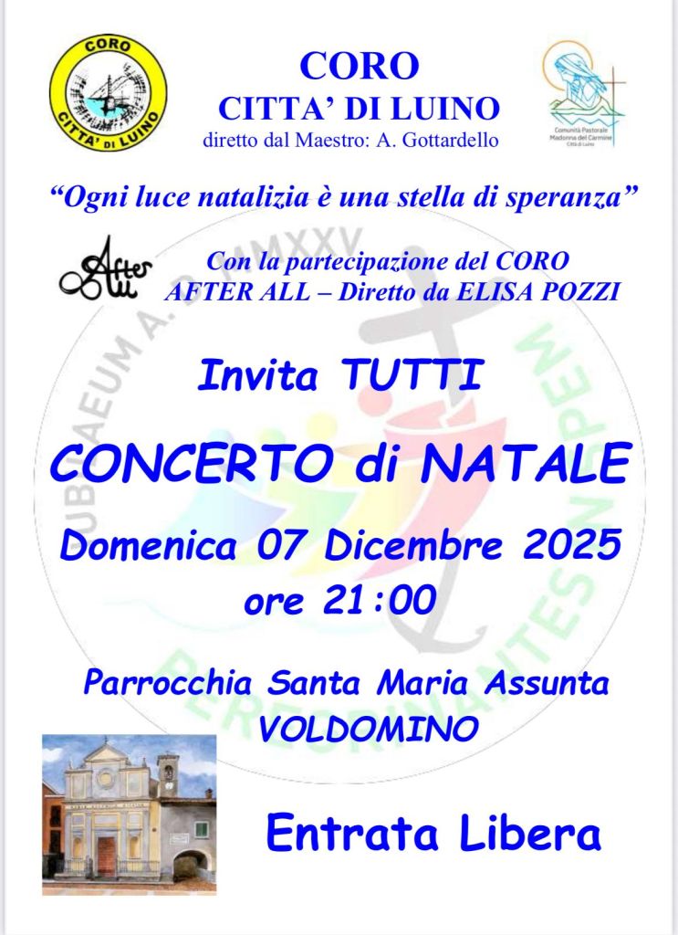 - Alle 21.00 nel Santuario del Carmine (Luino) concerto natalizio del Coro Polifonico Harmonia di Vergiate