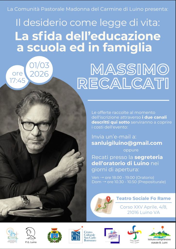 Domenica 1 marzo alle 17.45 ospiteremo il noto psicoanalista Massimo Recalcati in un pomeriggio di confronto sul tema dell’educazione a scuola e in famiglia al Teatro Sociale “Dario Fo e Franca Rame” di Luino.