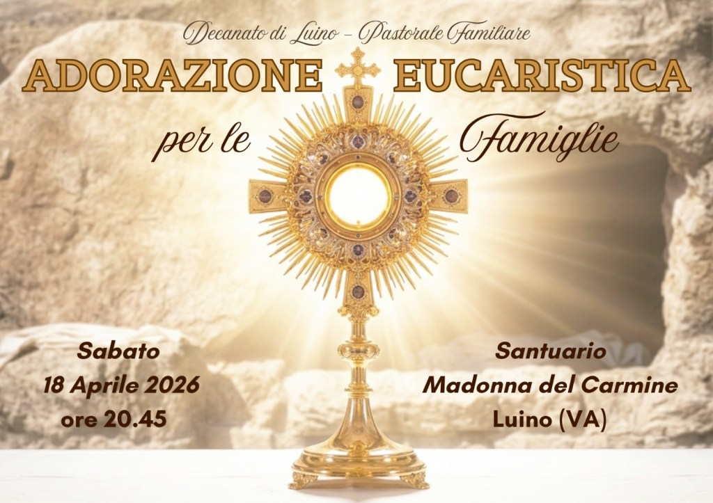 - Alle 20.45 al Santuario del Carmine (Luino), Adorazione Eucaristica per le famiglie di tutto il Decanato